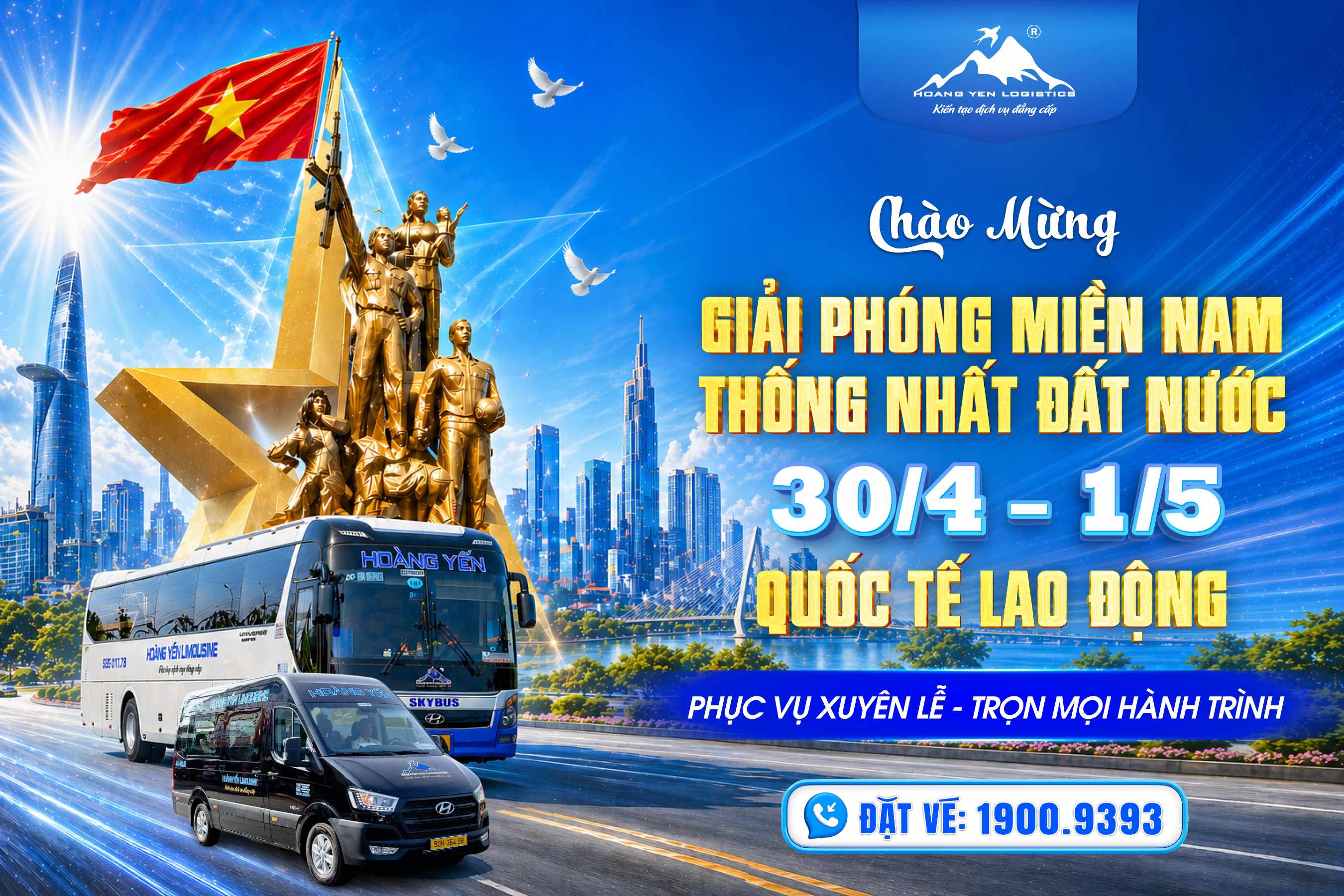Hoàng Yến Limousine gửi lời tri ân và chúc mừng đại lễ 30/4 – 1/5. Cam kết mang đến dịch vụ xe limousine an toàn, tiện nghi, sẵn sàng phục vụ mọi hành trình dịp lễ.